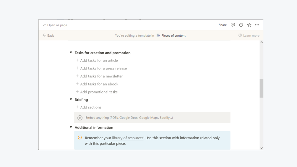 In addition, you will have briefing, measurement and tasks for the creation and promotion of the pieces, style guide with moodboard, ambassador program with the steps to launch it, media relations and agreements with them and even a library of resources to keep your links organized, whether they are mentions, clipping or articles that you will use as documentation of the pieces.