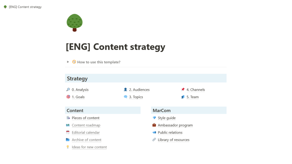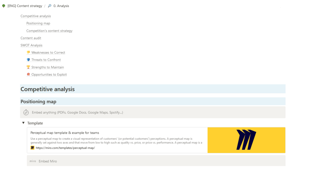 🔎 Analysis: competitors, content audit, SWOT (also as stand alone template).