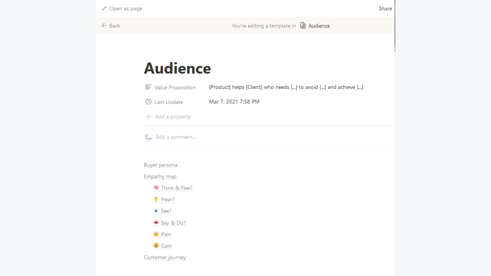 Buyer persona, Empathy map & Customer journey - Notion Template